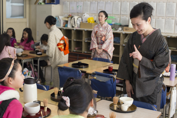 裏千家淡交会横浜支部で、横浜市立新田小学校にて、抹茶体験の1コマを持ちました。 畳に正座して茶筅を振るう体験と、 机の上に置かれたお盆の中で、棗から抹茶を掬い、自らお抹茶を点てる盆略点前から選んで参加して頂きました。